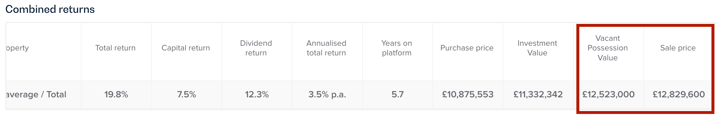 And in practice, if we look at the actual selling record, the Sales price matches the Vacant Possession Value.