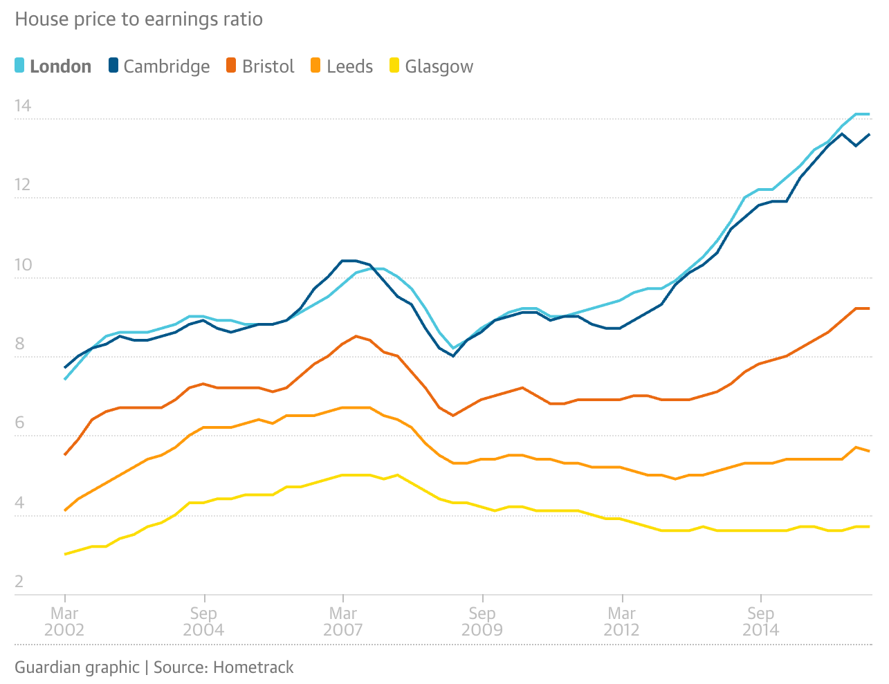 According to the Guardian, London house prices now stand at a 14x average earnings (!) That’s record high.