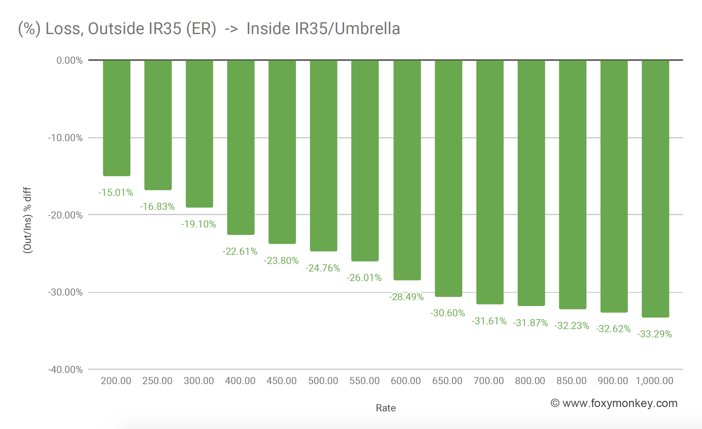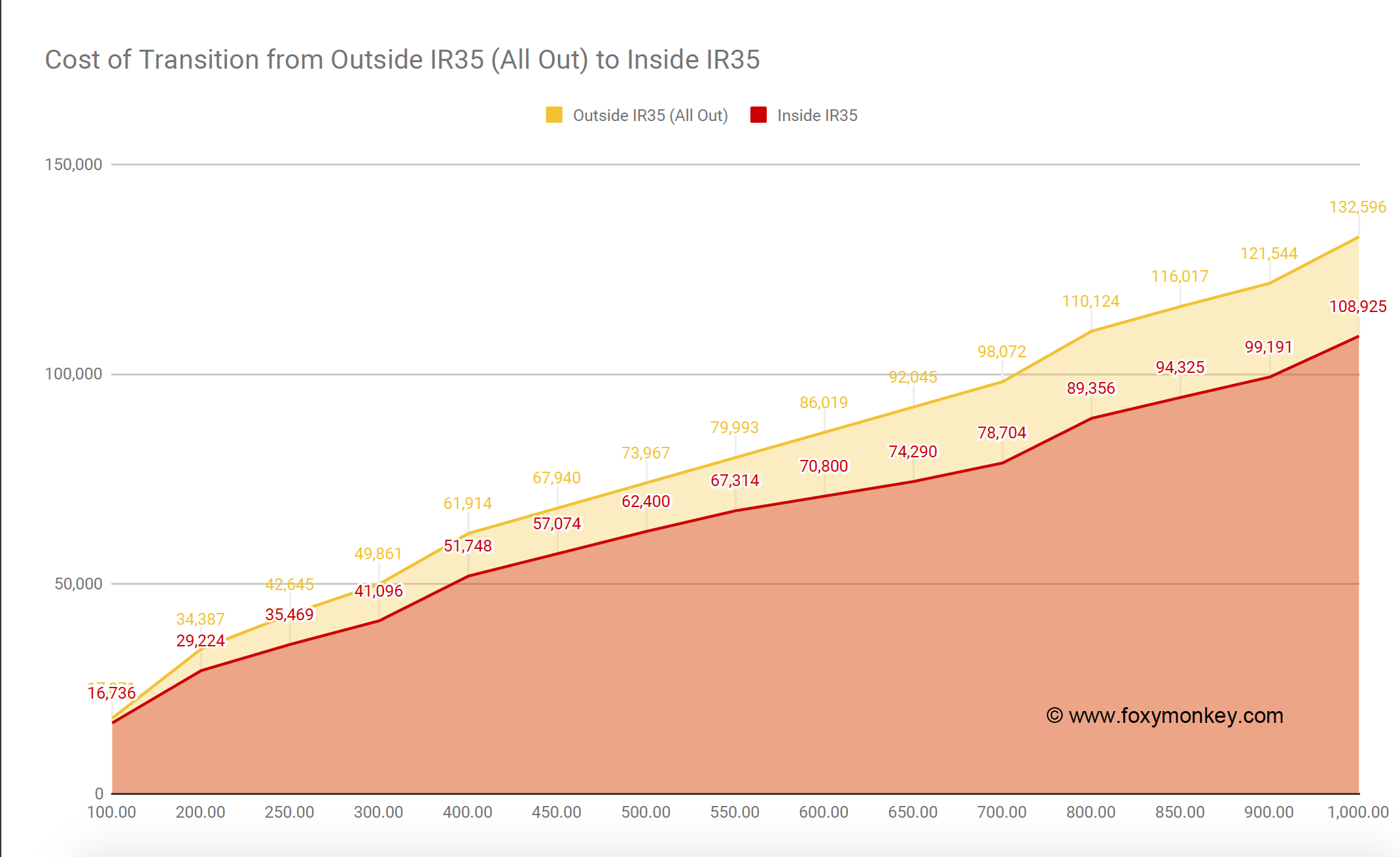 The higher the rate the more it will cost you to transition from outside IR35 to inside IR35. But it’s not that bad. (hint: it gets worse).
