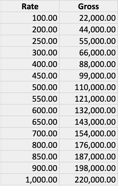 It is really hard to achieve the same gross income as a perm. Here is a table outlining the equivalent gross amount of a daily rate when charged annually (44 working weeks. 5w hols, 8d bank hols, 7d sick/void):