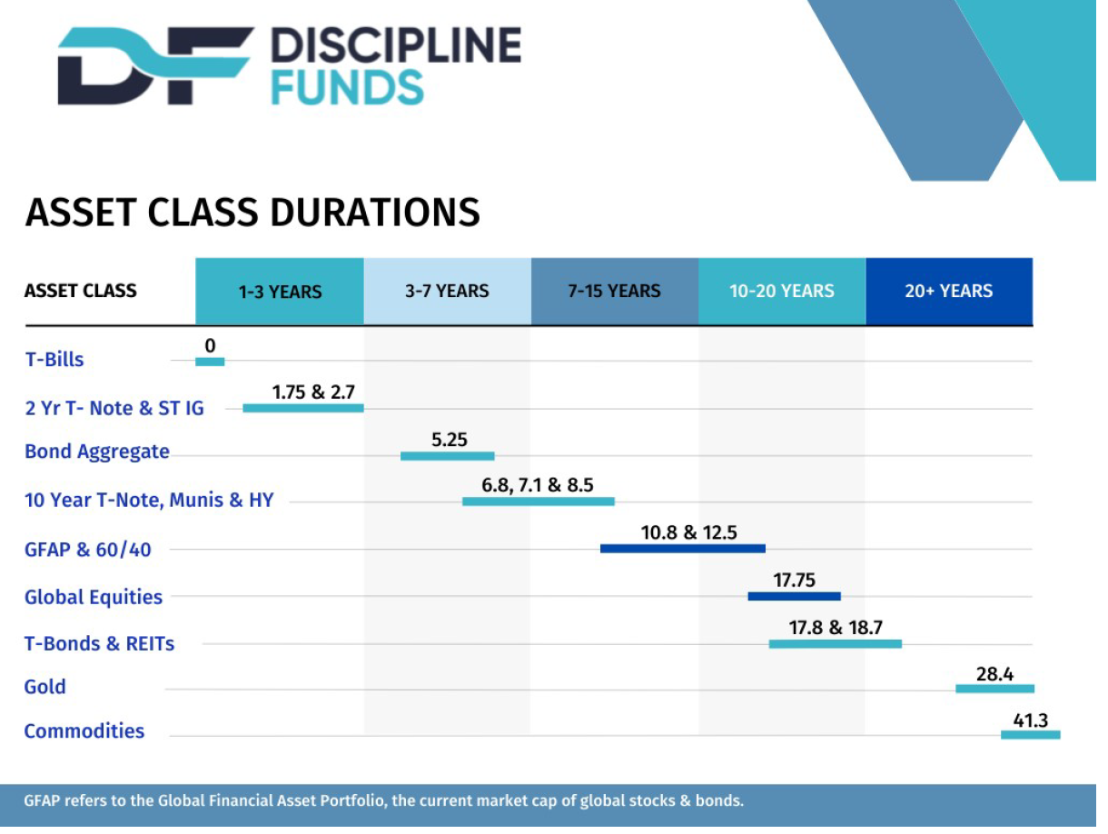 Here are the implied durations of different asset classes, which include inflation.