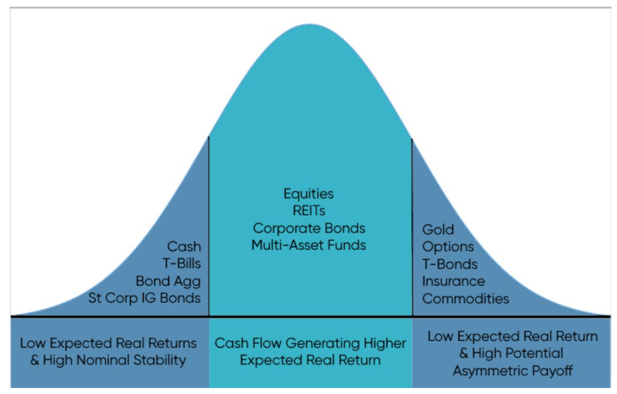 At the very end of the spectrum, you can have a few assets with low after-inflation returns or some asymmetric payoff. Like gold, long-term bonds, commodities and life insurance.
